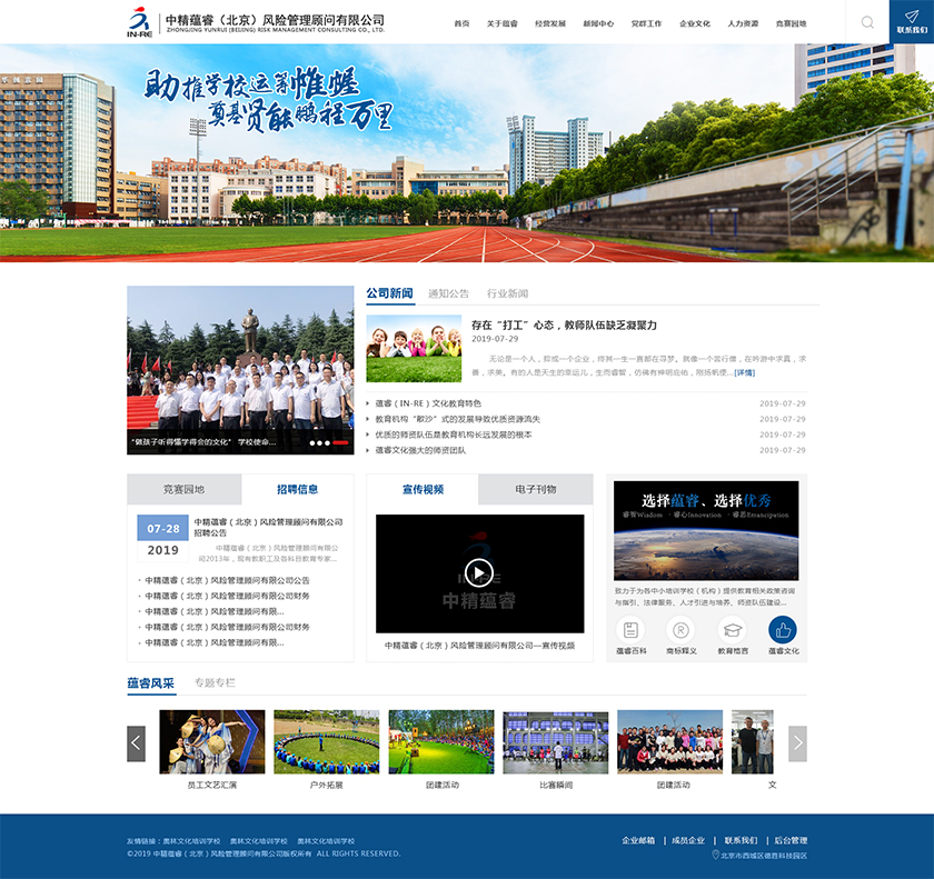 Project Description 中精蕴睿(北京)风险管理顾问有限公司2013年,现有教职工及各科目教育专家80多人,致力于为各中小培训学校(机构) 提供教育相关政策咨询与指引、法律服务、人才引进与培养、师资队伍建设与培训、教学教研与学科创新、市场营销企划、文化 理念塑造与品牌输出的专业化教育管理全方位的综合服务。 Official website address 文山http://in-re.com/ I want to share